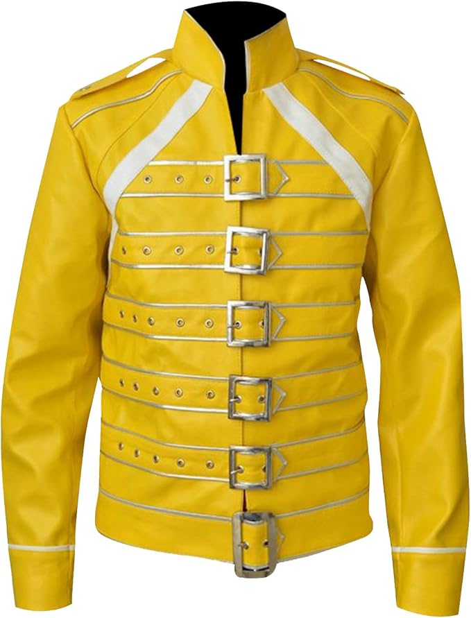 Moustache, débardeur blanc, veste jaune et jean slim : le look iconique du chanteur de Queen lors de sa performance légendaire au Live Aid est à la fois simple et percutant.